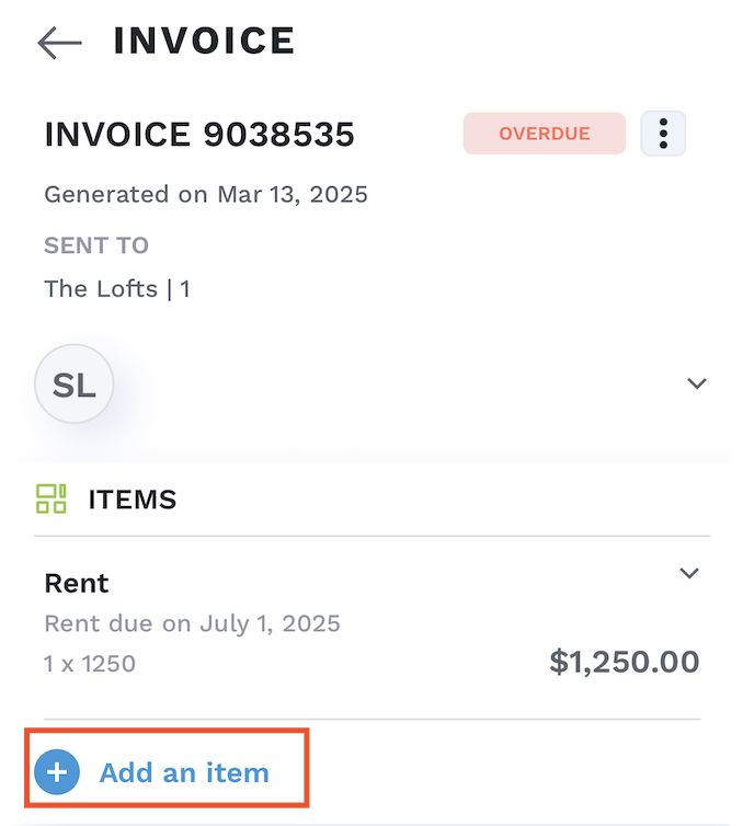 You may want to attach an additional fee to a tenant’s existing invoice, such as a maintenance fee, parking fee, or a utility bill. To add a fee to a current invoice: