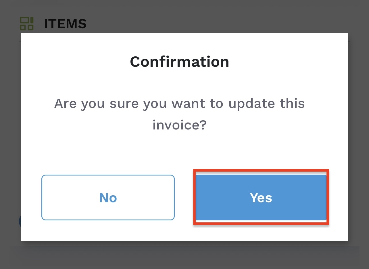 5. A confirmation pop-up will appear asking if you would like to update your invoice. Click “yes.”