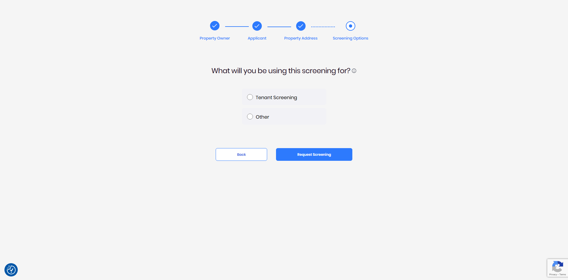 The last step is to select your level of screening. If you want to customize your application, click the link below the screening level choices. If you’re ready to proceed, click “Next” and then “Request Screening” on the page that follows.