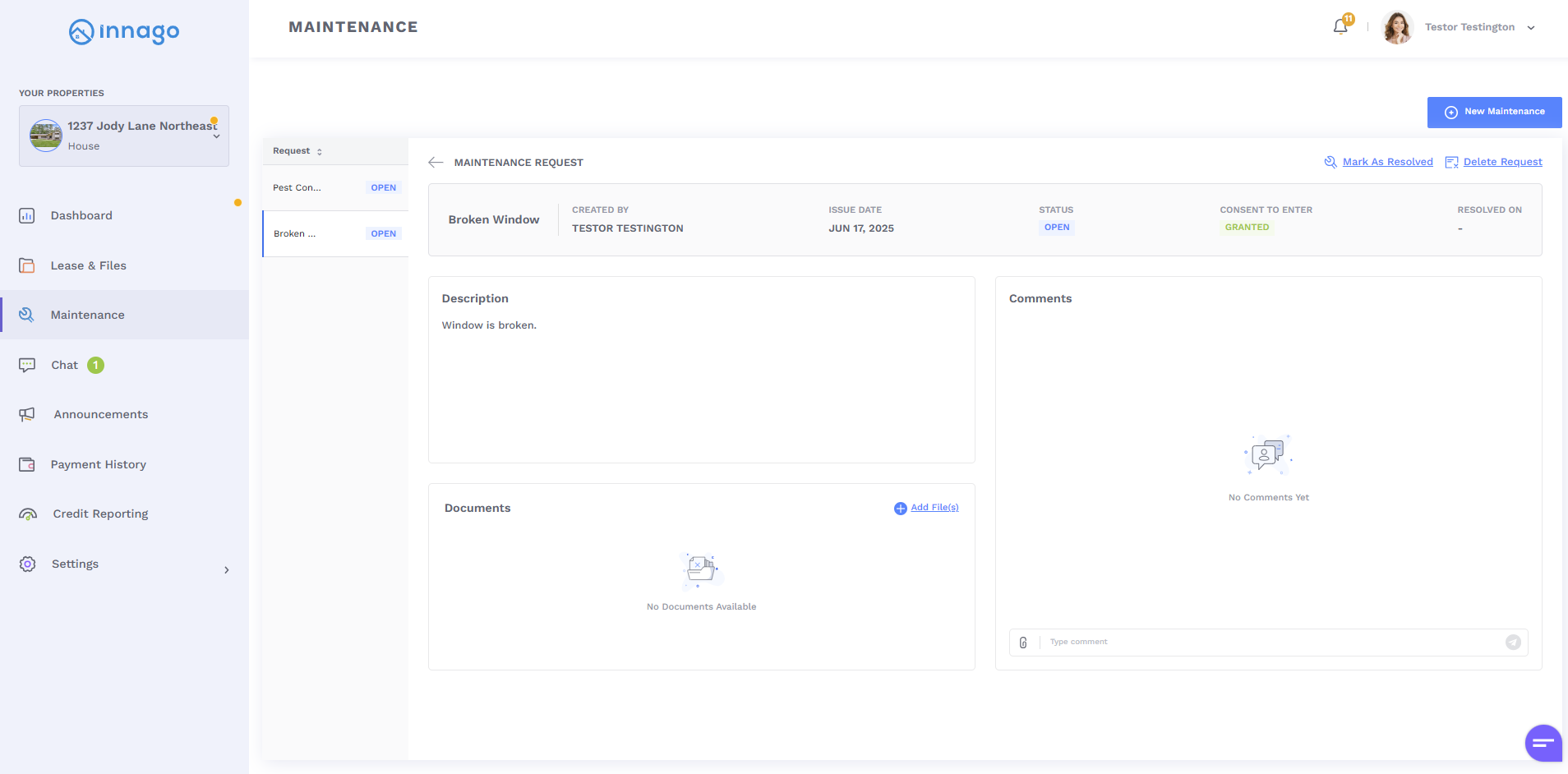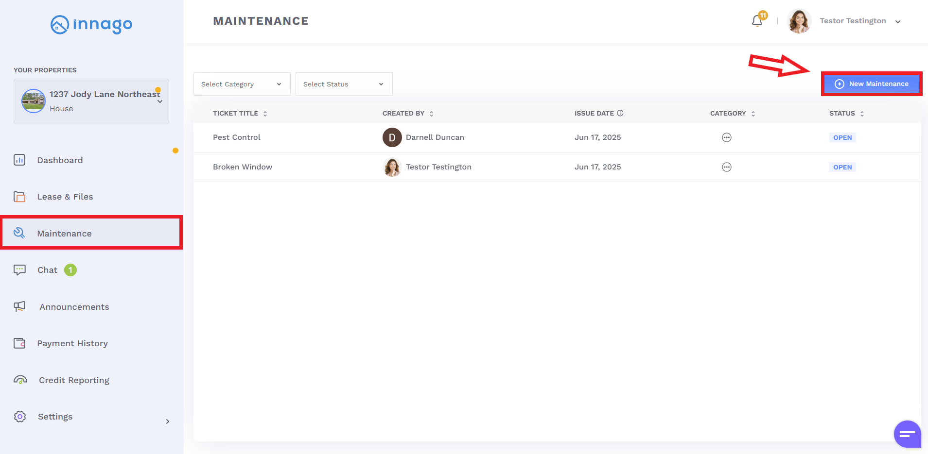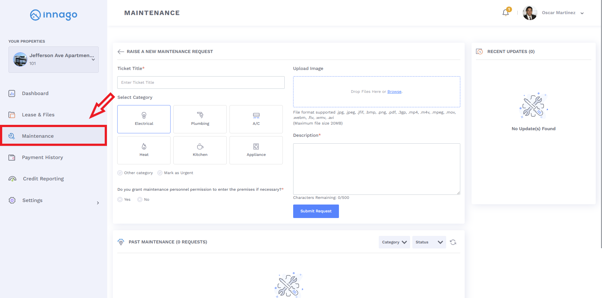 Need to submit a maintenance request? No worries! You can easily do this by logging into your Innago account, and visiting your Maintenance page from the main menu.