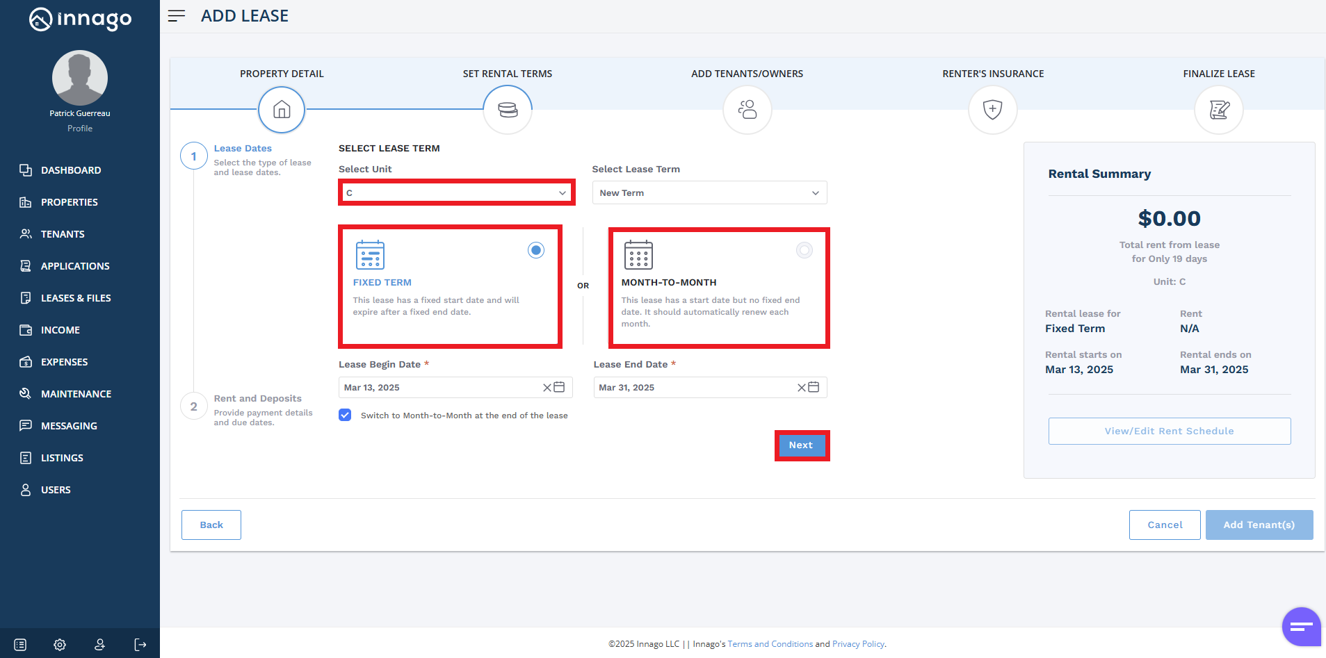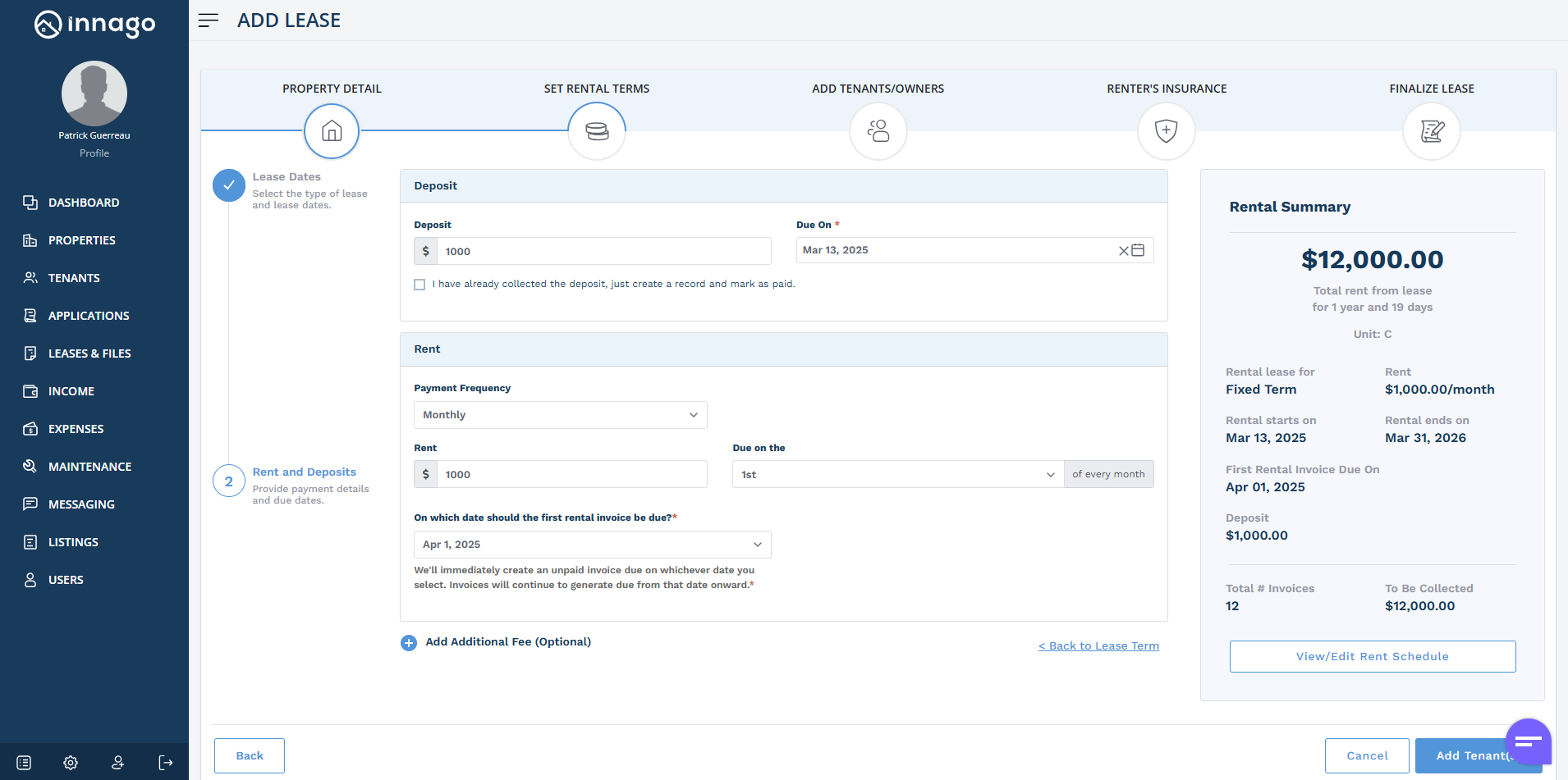 Creating a lease term and adding a tenant to Innago is a simple and streamlined process. Just follow the instructions below: