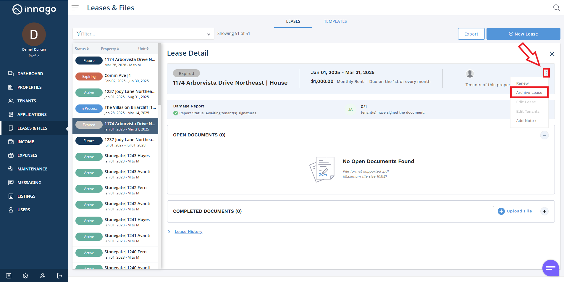 If you want to archive an expired lease term, you’ll just follow the directions below: