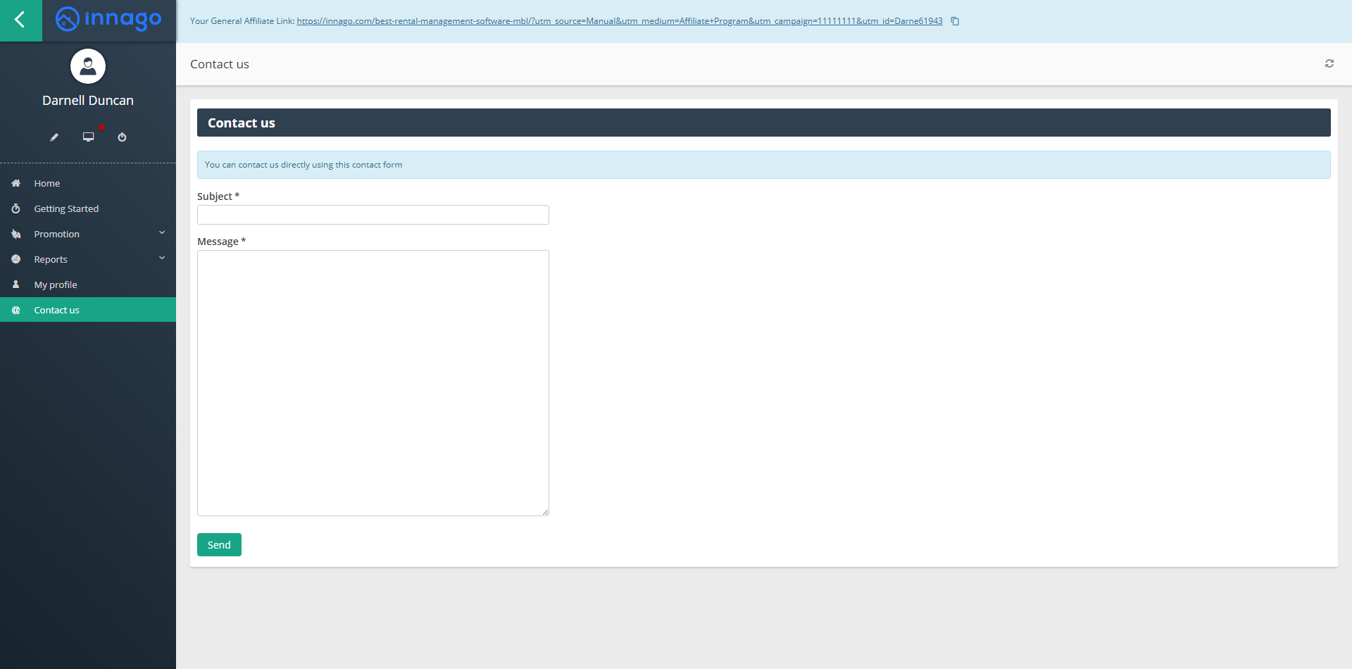 If you have any questions directly related to your affiliate account, referrals, payouts etc. click the “Contact Us” button from the main menu on the left and fill out the form there.