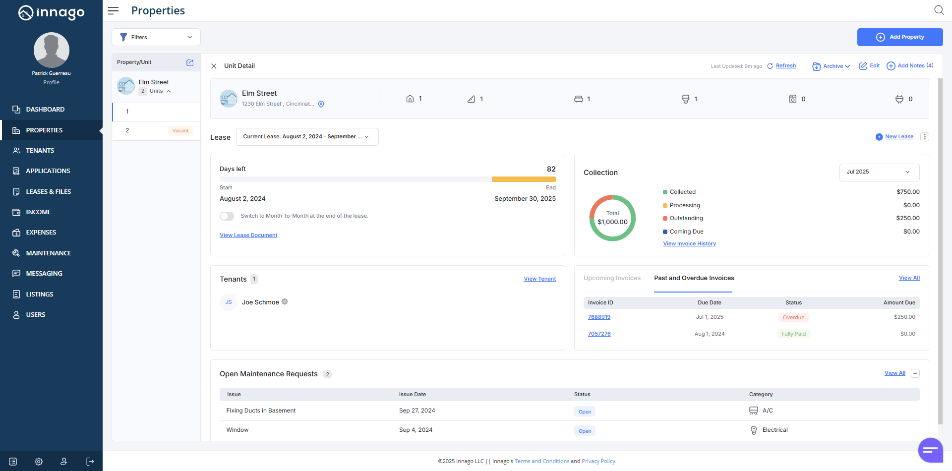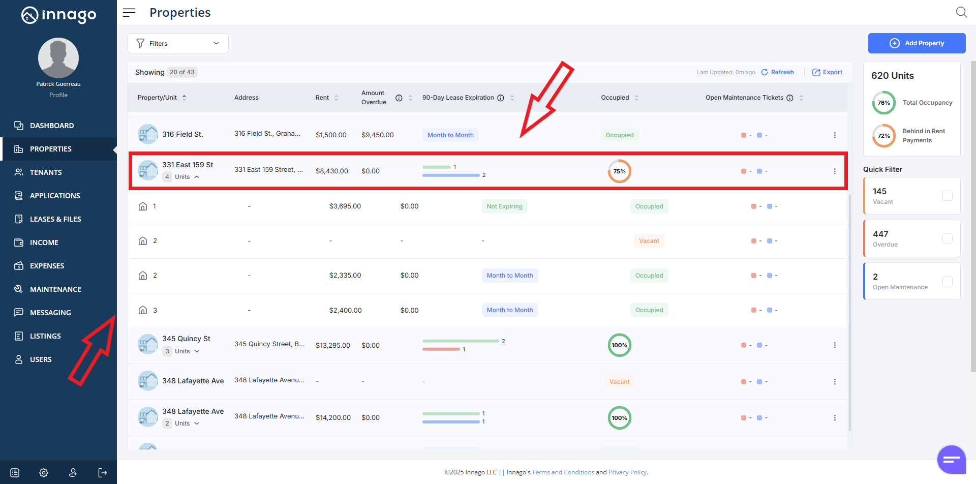 1. From the Innago menu on the left, click “Properties”.