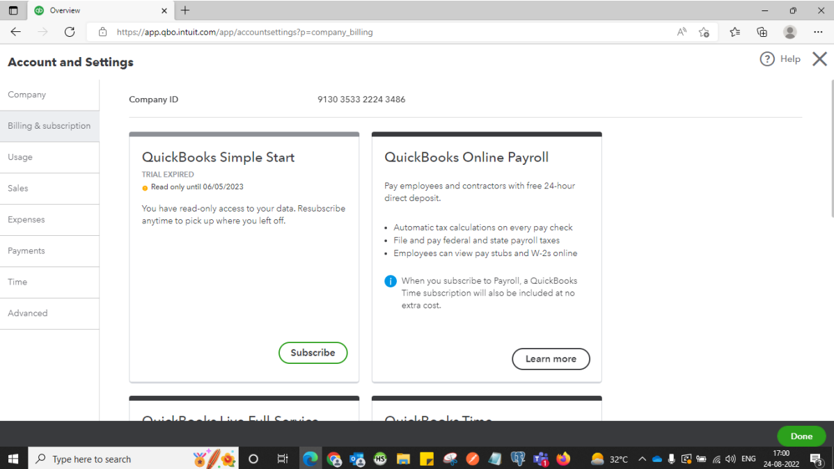 Now click on Billing and Subscription and on the top, you can find your Company ID.