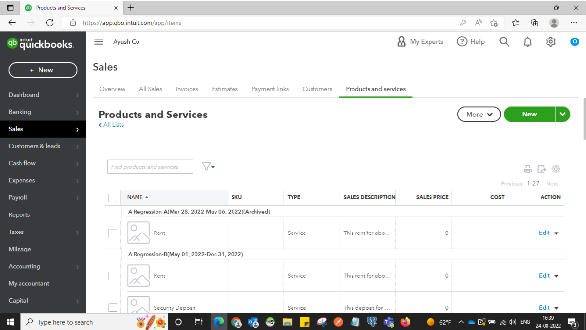 Click on Products and Services where you can check all leases data for any property.