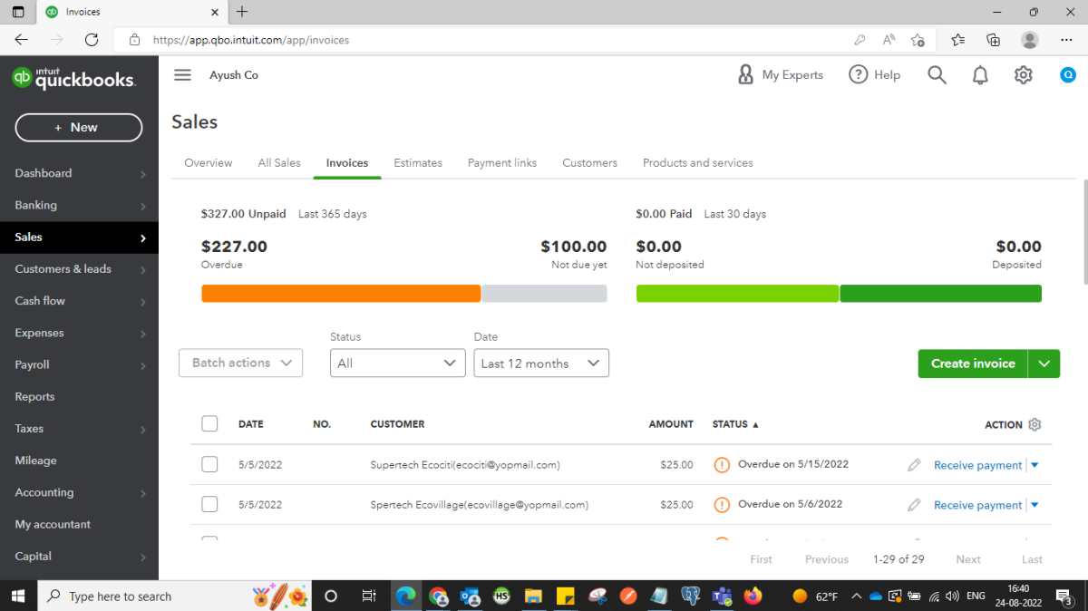 Login with QuickBooks and go to Sales on the left side.