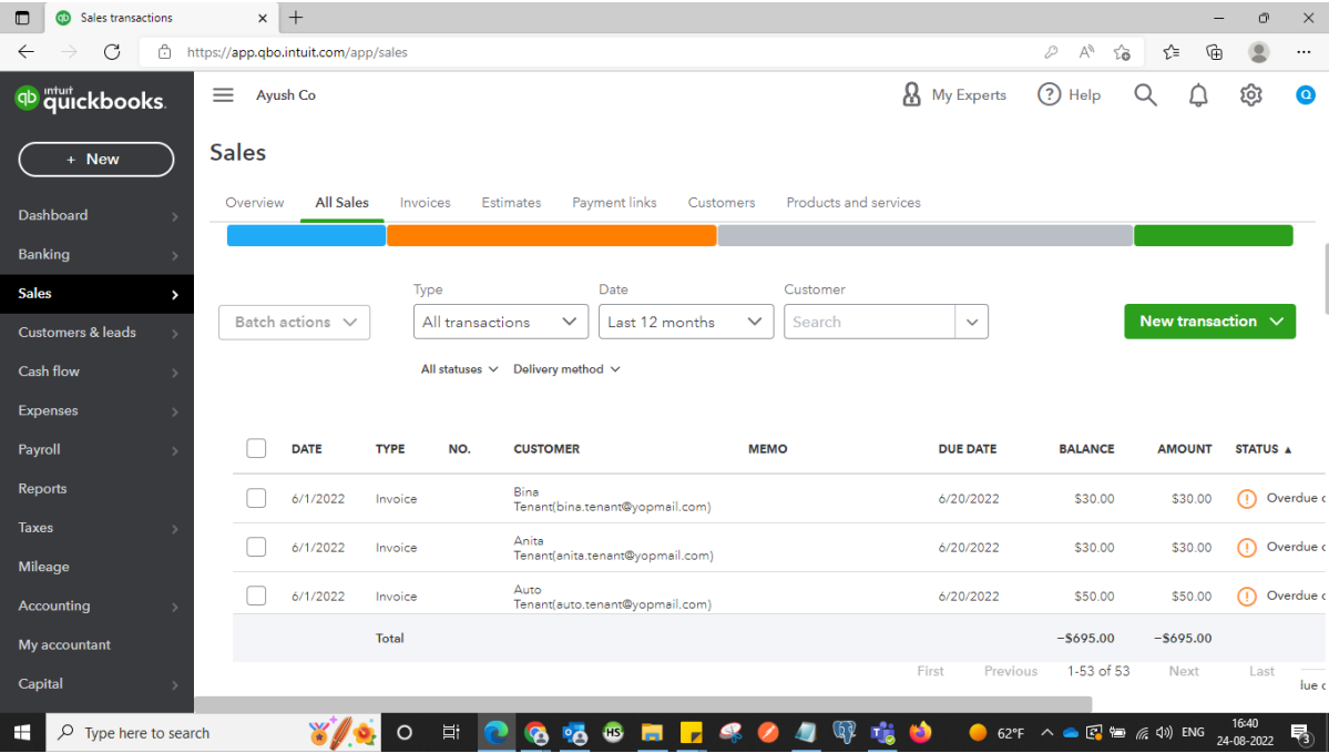 Click on All Sales where you can check all transactions with respect to customers.