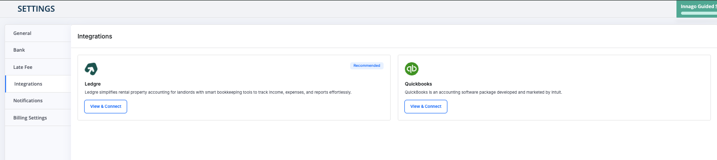 Visit your Settings page in Innago and select the Integrations tab.