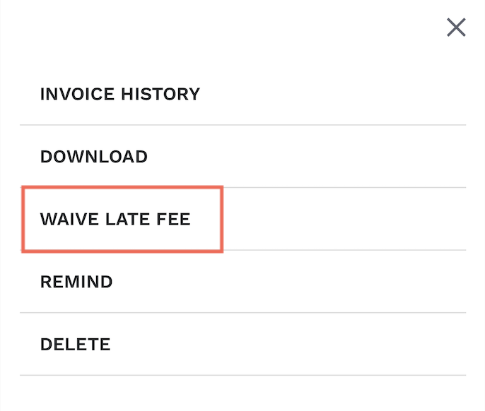 3. On the top of the invoice, click ‘Waive Late Fee’.