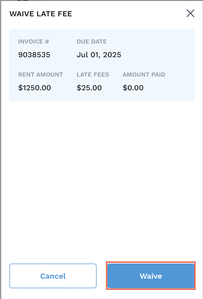 4. Select ‘Waive Late Fee’.